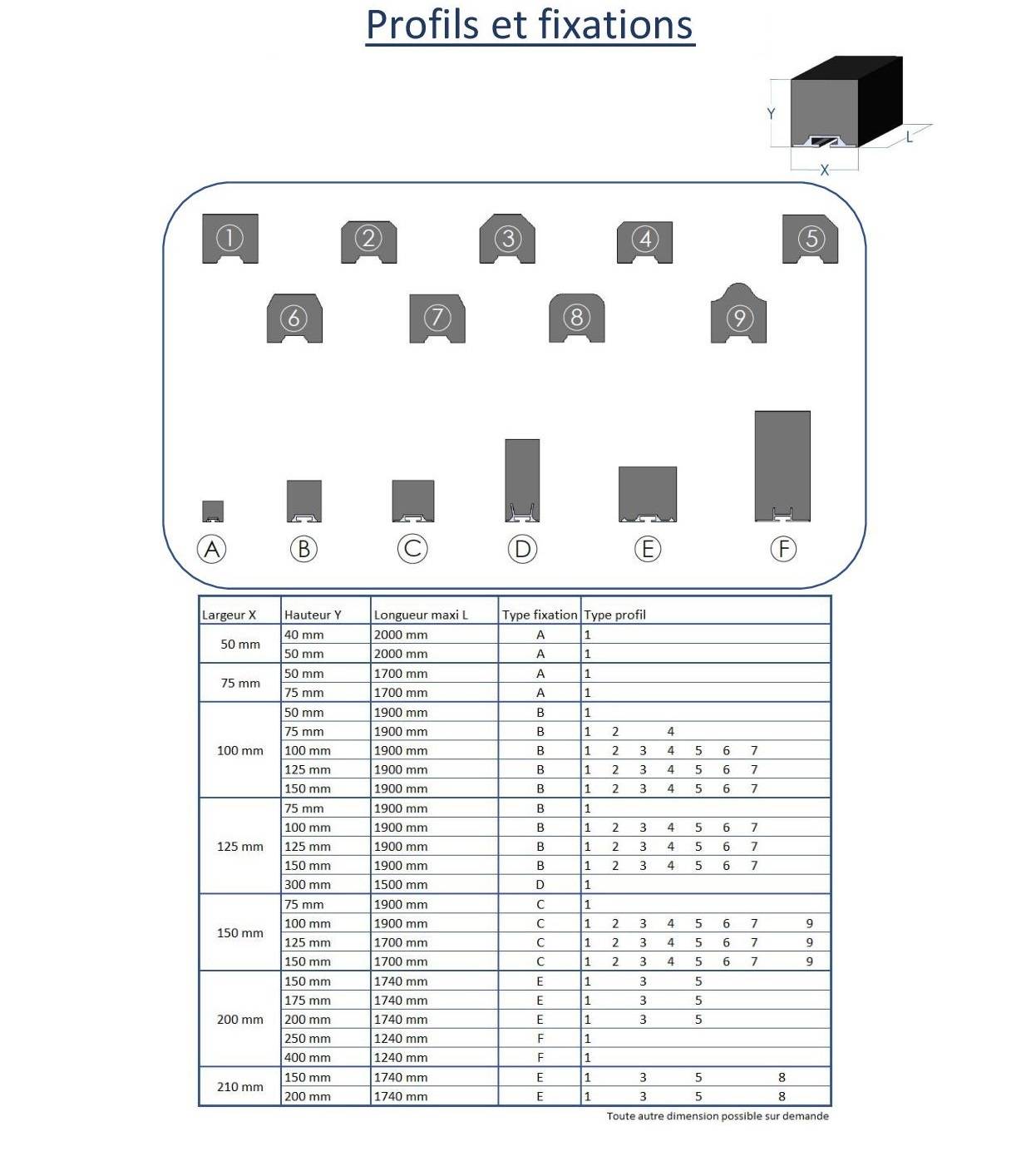 Vous trouverez ci-dessous nos principaux profils et rails de fixation. Pour toute autre dimension, n'hésitez pas à nous contacter.